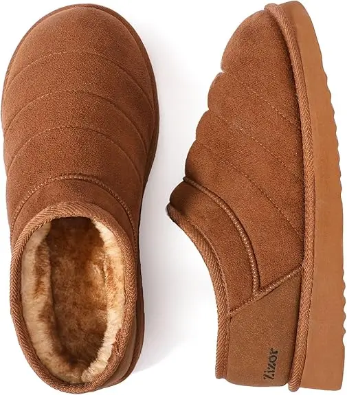 ZIZOR Women’s Winter Bootie Slippers feature a soft suede exterior with plush fur lining that keeps feet warm and comfortable during colder days. The memory-foam insole provides cushioned support for extended wear, helping reduce foot fatigue. With a sturdy sole designed for indoor comfort and quick outdoor use, these slippers combine cozy warmth, cute style, and everyday practicality